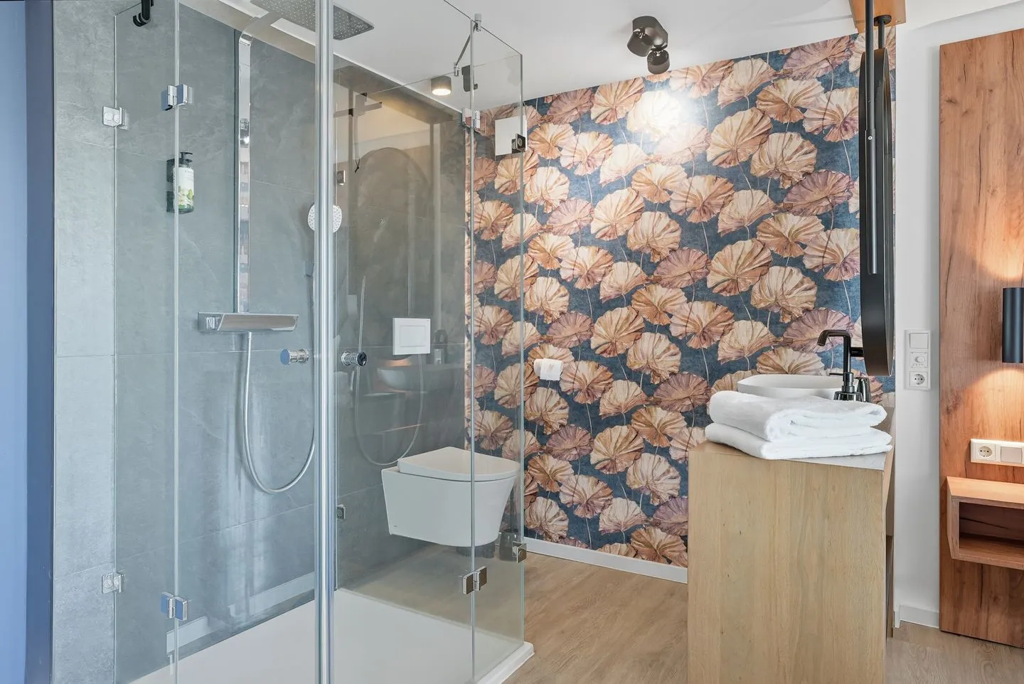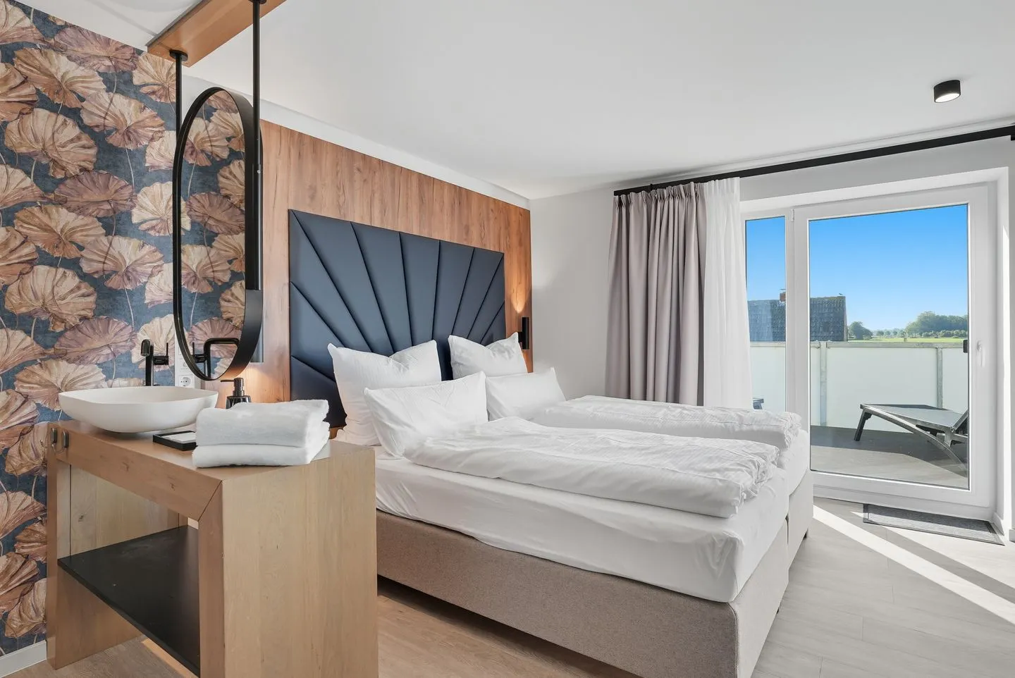 Willkommen in unserer besonderen Ferienwohnung in Carolinensiel! Diese Unterkunft besticht durch ein offenes und modernes Designkonzept, bei dem das Bad im Schlafzimmer integriert ist. Genießen Sie den Komfort und die Annehmlichkeiten eines hochwertigen Badezimmers, während Sie direkt vom Schlafzimmer aus, einen Blick auf die umliegende Landschaft werfen können.