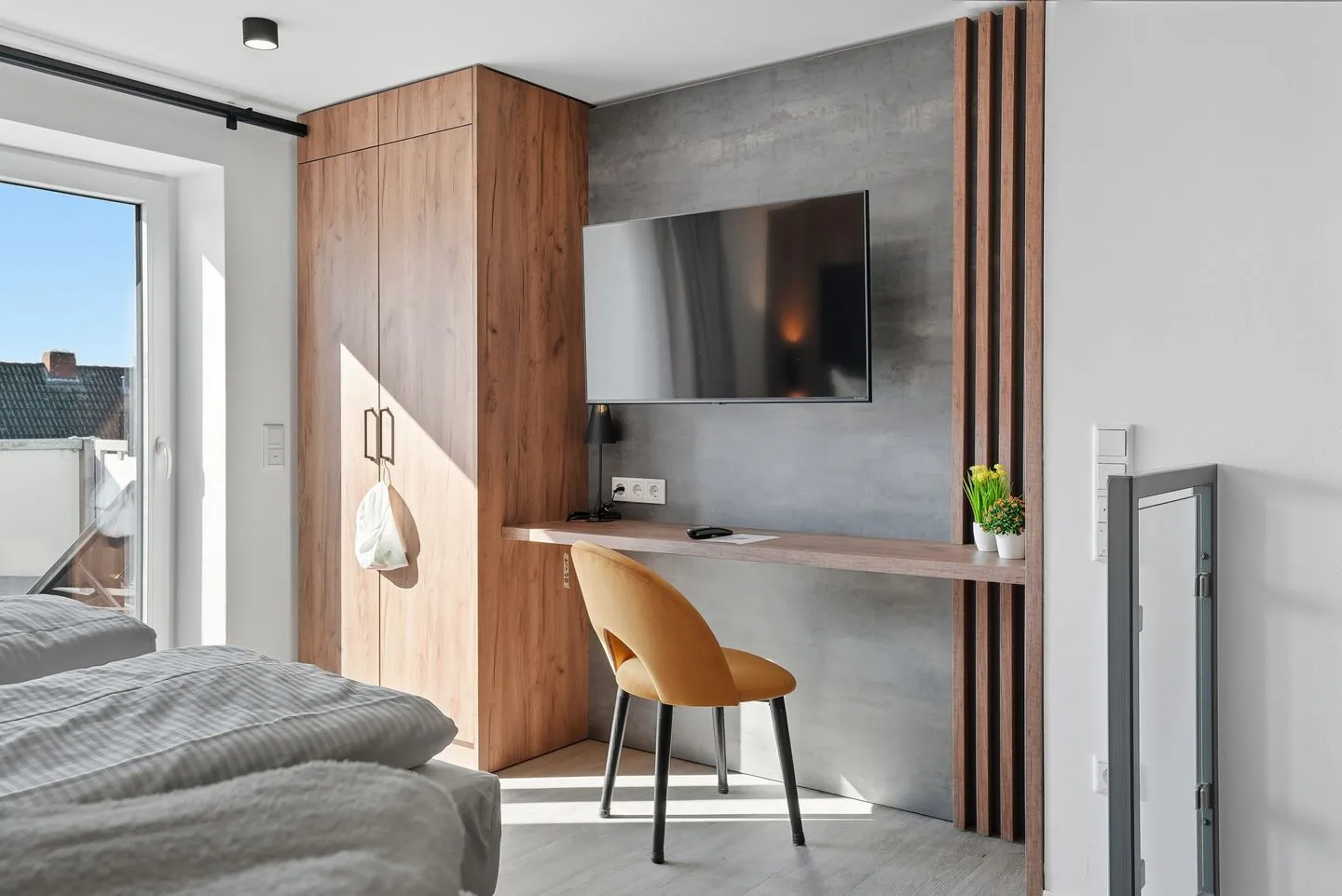 Willkommen in unserer besonderen Ferienwohnung in Carolinensiel! Diese Unterkunft besticht durch ein offenes und modernes Designkonzept, bei dem das Bad im Schlafzimmer integriert ist. Genießen Sie den Komfort und die Annehmlichkeiten eines hochwertigen Badezimmers, während Sie direkt vom Schlafzimmer aus, einen Blick auf die umliegende Landschaft werfen können.